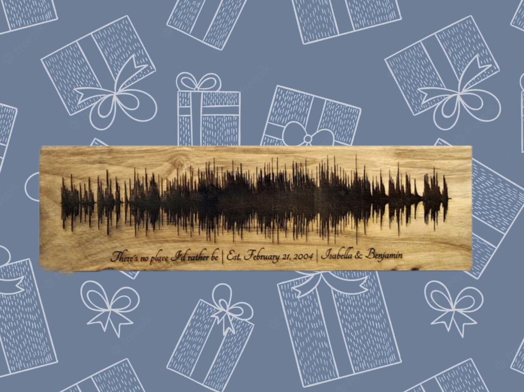 Have you heard of sound wave art? This shop can create sound waves of any song or voice recording! It is engraved on walnut wood and makes for a beautiful and meaningful piece of art to hang in a place of honor.
