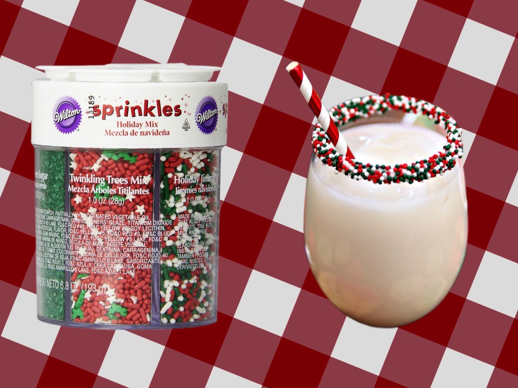 If you’re like me, a glittery drink in a fancy champagne flute isn’t quite extra enough. To add the final touch of flare you need to grab some festive sprinkles. Just dip the top of your glass in honey and then dip it into a pile of sprinkles. Voila, everyone will be talking about this.