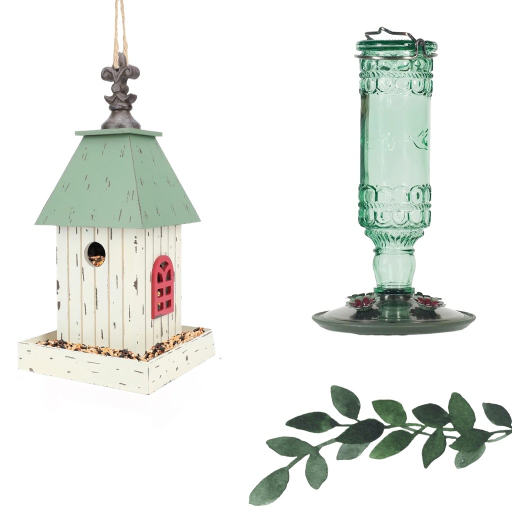 Get your hands on this charming hummingbird feeder boasting an exquisite antique aesthetic. Featuring a green vintage-style bottle and a brushed nickel base adorned with decorative ports, it’s bound to elevate your backyard decor. And don’t overlook this adorable cottage bird feeder, perfect for seed-loving birds. Crafted for outdoor use, this hanging bird feeder provides a cozy haven for birds while ensuring seed remains easily accessible.